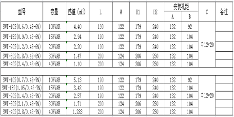 例如:SWT-40S(2.8/0.48-7%)為共補電容容量為40Kvar,電抗容量為2.8Kvar,電壓等級為480V,電抗率為7%的電抗器。